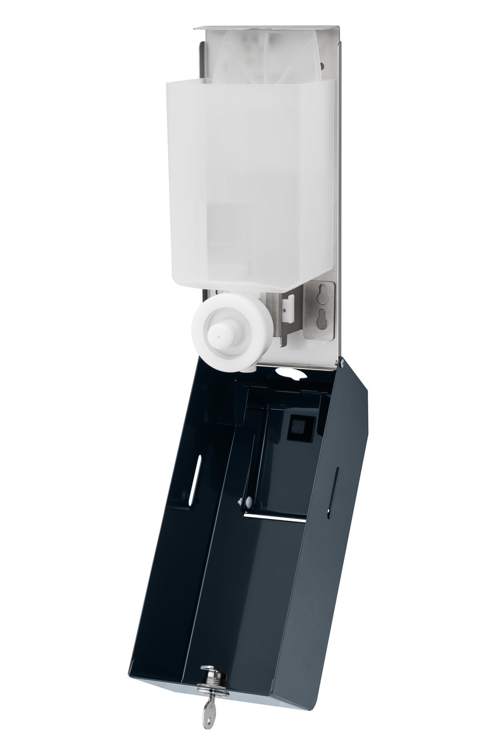 Dozownik na piane o pojemności 900 ml. Wykonany ze stali nierdzewnej, malowane proszkowo na kolor grafitowy RAL 7016. Posiada wziernik pozwalający kontrolować ilość pozostałego wkładu. Zamykany na kluczyk. Wyprodukowany w Wielkiej Brytanii.