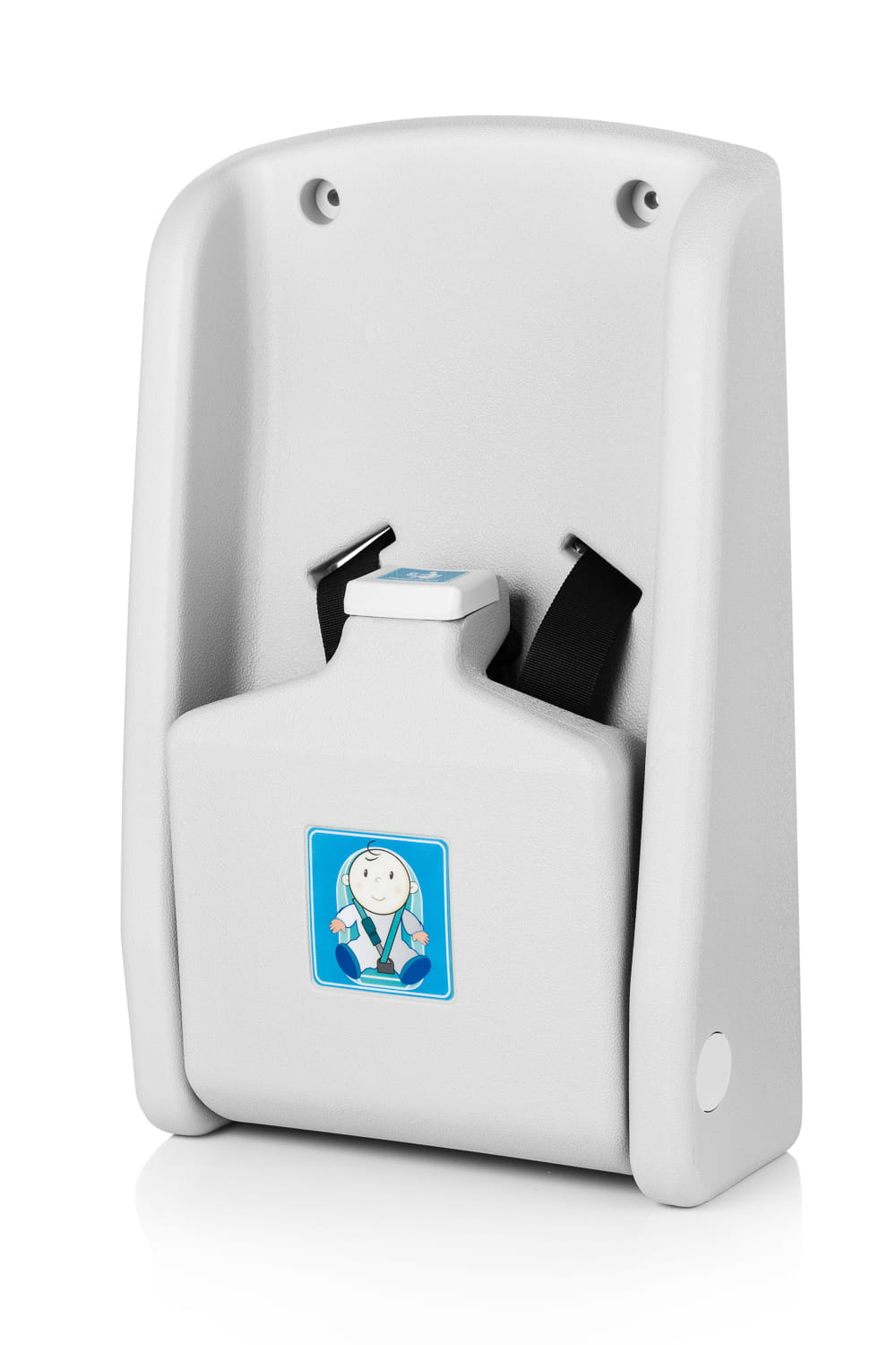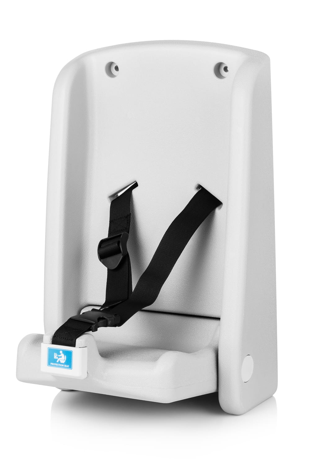 Łatwe w użyciu, higieniczne krzesełko dziecięce naścienne do łazienek w miejscach publicznych.